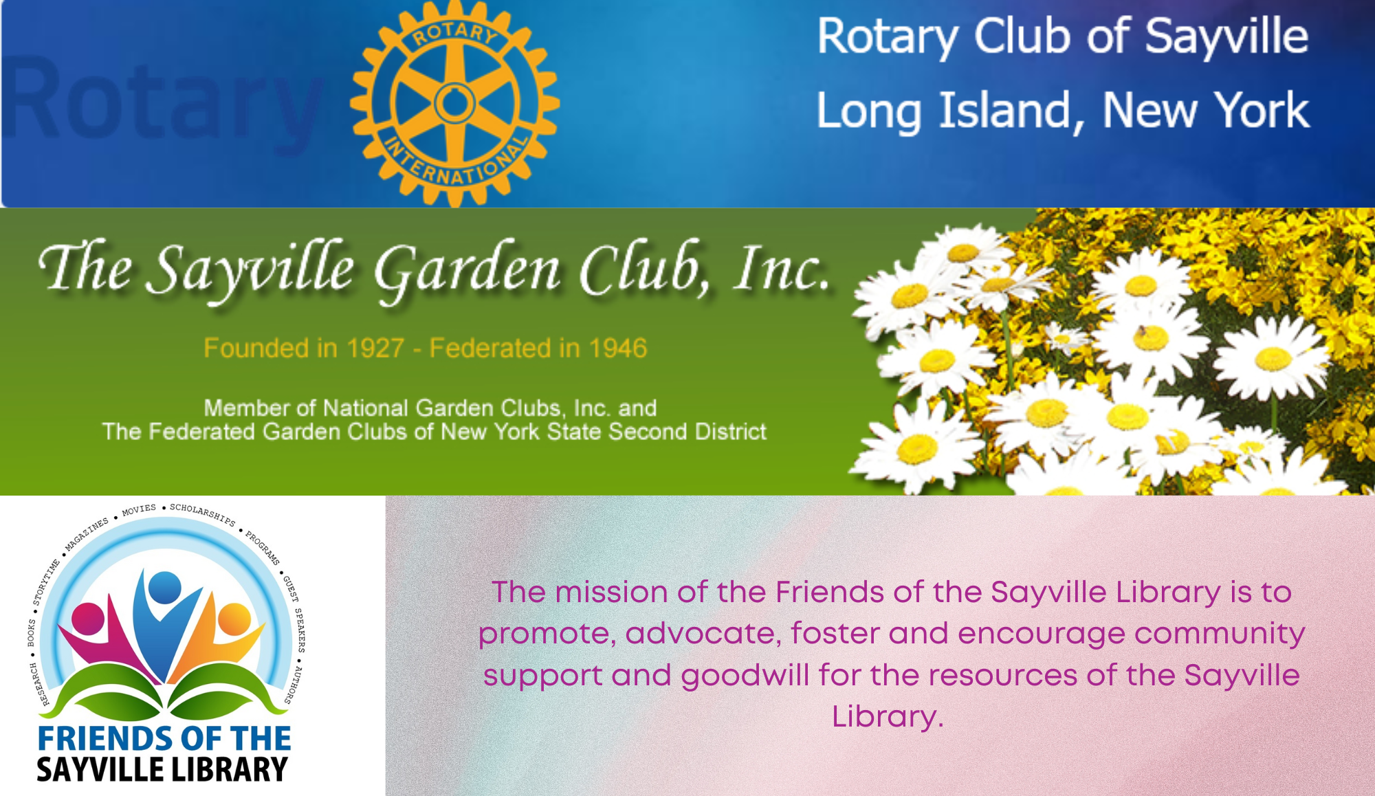 This garden would not be possible without the generous donations from the following organizations, Rotary Club of Sayville, The Sayville Garden Club, Friends of the Sayville Library.