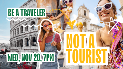 Learn how to plan a trip that will include authentic experiences, make cross-cultural connections and will have you living like the locals. Enjoy traditional cuisine, search out artistic and musical events, find local festivals and fairs, shop the open air markets – all these things are available to you if you know how to find them. Save time and money by avoiding the tourist traps. Join us for a one session workshop that is filled with travel tips and information.