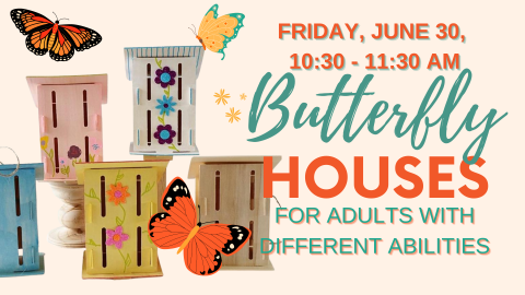 Decorate your own butterfly house to hang in your yard! For adults with different abilities.