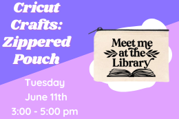 Personalize your own zippered pouch using Cricut Design Space and iron-on. Nonrefundable fee: $5 check, money order, or credit card.