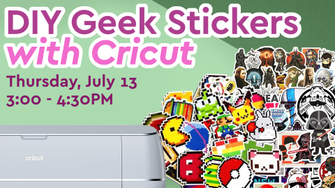 Today is National Embrace Your Geekiness Day! Come celebrate your favorite fandom with a custom sticker, made by you, on our Cricut machine!