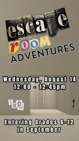 This Adventure Begins at Your Library! Solve various mysteries and puzzles to see if you can escape the room.
