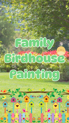 Work together with your grown-up to paint and decorate a one-of-a-kind birdhouse for your local feathered friends! Each family will get one birdhouse to decorate. Dress for a mess. *Please register one person and list other family members attending in the "Special Notes" field.