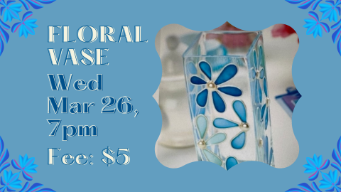 Welcome spring by creating this beautiful floral masterpiece. Join instructor Pamela for step by step instruction in creating your very own decorative vase. No previous painting experience needed, just bring your creativity!