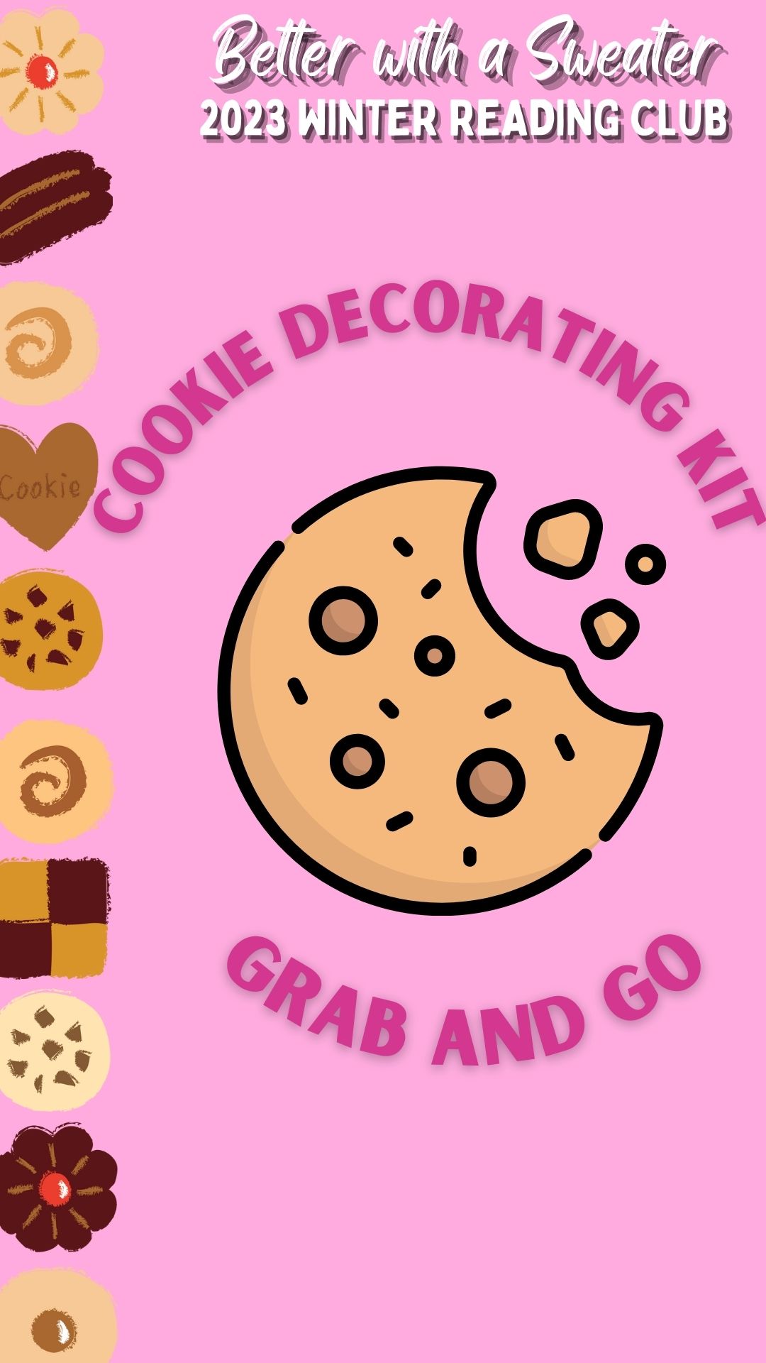 To celebrate the start of Winter Reading Club, pick up a kit with two sweater-shaped cookies you can decorate with frosting and sprinkles! PLEASE ABIDE BY AGE/GRADE GUIDELINES. ADDITIONAL REGISTRATIONS WILL RESULT IN CANCELLATION. **Please note: due to perishable nature of ingredients, kits not picked up by Monday, January 9 will be offered to patrons on the Wait List.**