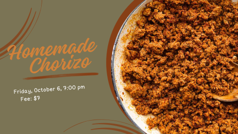 Using pork or beef, Chef Maria will demonstrate how to make authentic Mexican chorizo!