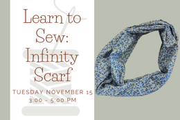 Learn to sew an infinity scarf to keep you warm as it gets chillier. Beginners welcome!
