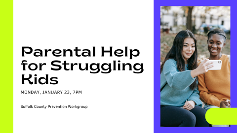 Are you a parent of a child 3-18 who has concerns about your child but you're not sure about where to go for help? This workshop is for you! The Suffolk County Prevention Workgroup will be presenting a free, one-hour workshop on how to access services and supports regarding youth struggling with or experiencing developmental disabilities, mental health challenges and substance use.