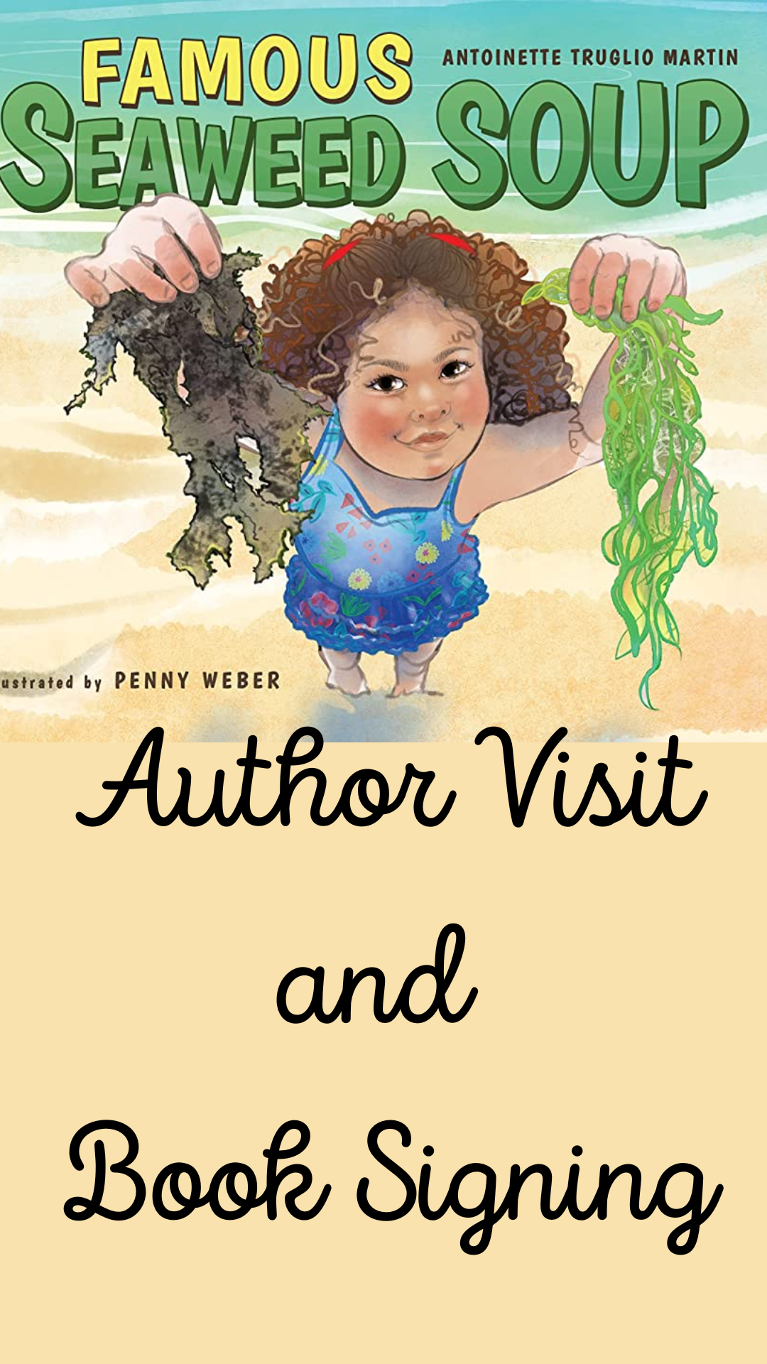 Join us in welcoming local author Antoinette Truglio Martin as she reads a newly updated version of her classic summer story Famous Seaweed Soup and then stay for some fun activities and a meet and greet with the author! Books will be available for purchase and signing at the end of the program.