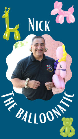 Nick blends education and fun with a comedic twist. Learn about the history of balloons and their impact on everyday life while crazy hats, animals and your favorite characters come out of his hands with amazing speed.
