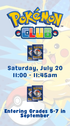 Bring your Pokémon cards and/or your game devices to Teen Central and meet with other Pokémon enthusiasts to battle, trade, and play.
