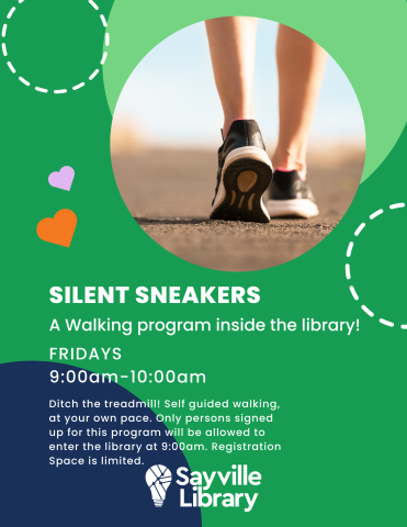 Take a break from that treadmill and get a change of scenery! Come and walk indoors at the library between the hours of 9am-10am. Only persons signed up for this program will be allowed to enter the Library at 9am. Registration space is limited. Signup form is located on the **March 7th** program date.