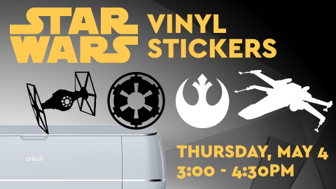 Come celebrate Intergalactic Star Wars Day with us as we make vinyl stickers of the Empire and Rebels logos using our Cricut machine! Which side will you choose?