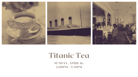 The elegance of afternoon tea and the allure of the world's most famous ship come together, deliciously, in this program from Margaret M. Johnson. Author of thirteen cookbooks, including Teatime in Ireland, Johnson weaves tea history and Titanic lore into a formal three-course menu that includes sandwiches and savories, scones and tea breads, and decadent sweets, many based on period recipes. A sparkling beverage is served along with tea. Ms. Johnson’s cookbooks will be available for sale and signing as well, For a festive touch, Bring your own teacup and saucer.