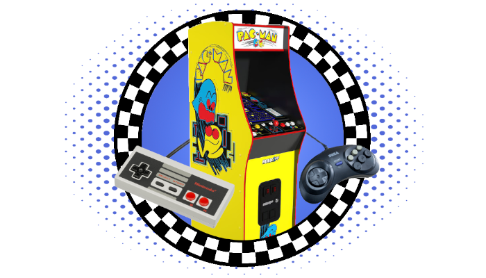 We've converted our Portico Room into a full retro arcade, complete with an Atari game cabinet, the NES, SNES & Playstation Classic consoles, PCs playing your favorite retro games, and much more!