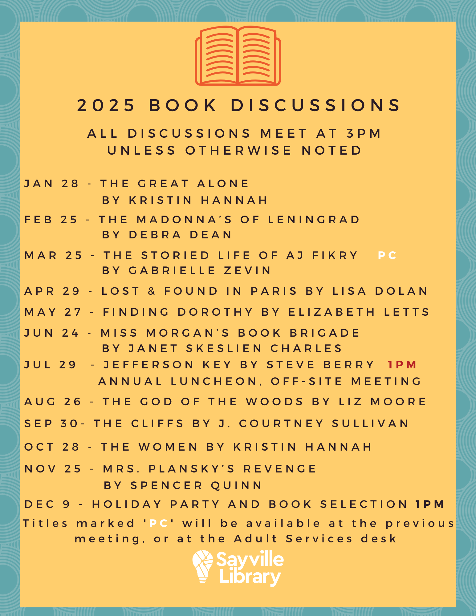 Want some good advice on what to read next? Start with your local librarian. We can recommend your next book or movie. Email us at Connect@sayvillelibrary.org or chat with us through our chat service!