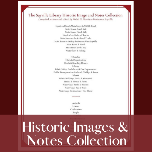 The Sayville Library Long Island Collection is home to over 2300 items which are cataloged and searchable through the online catalog. Additional items of historic value are housed in our archives and available to see upon request and the Library regularly creates displays using items from the collection. We also have several digital collections, including local newspapers, postcards, and oral histories, which are available online for immediate access.
